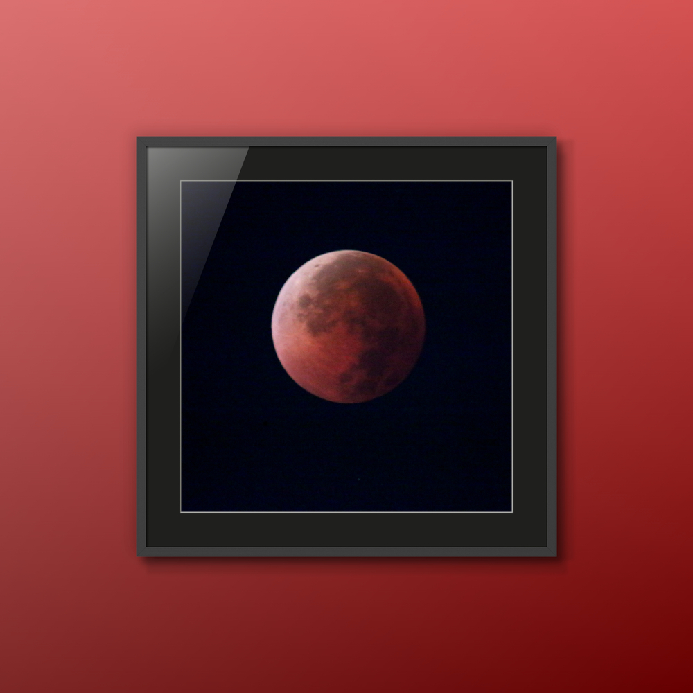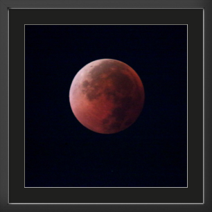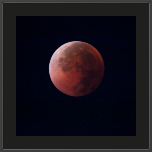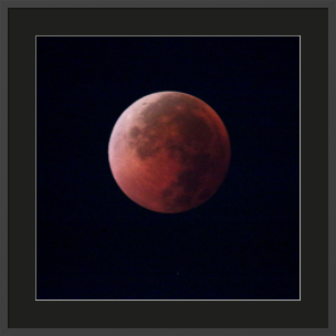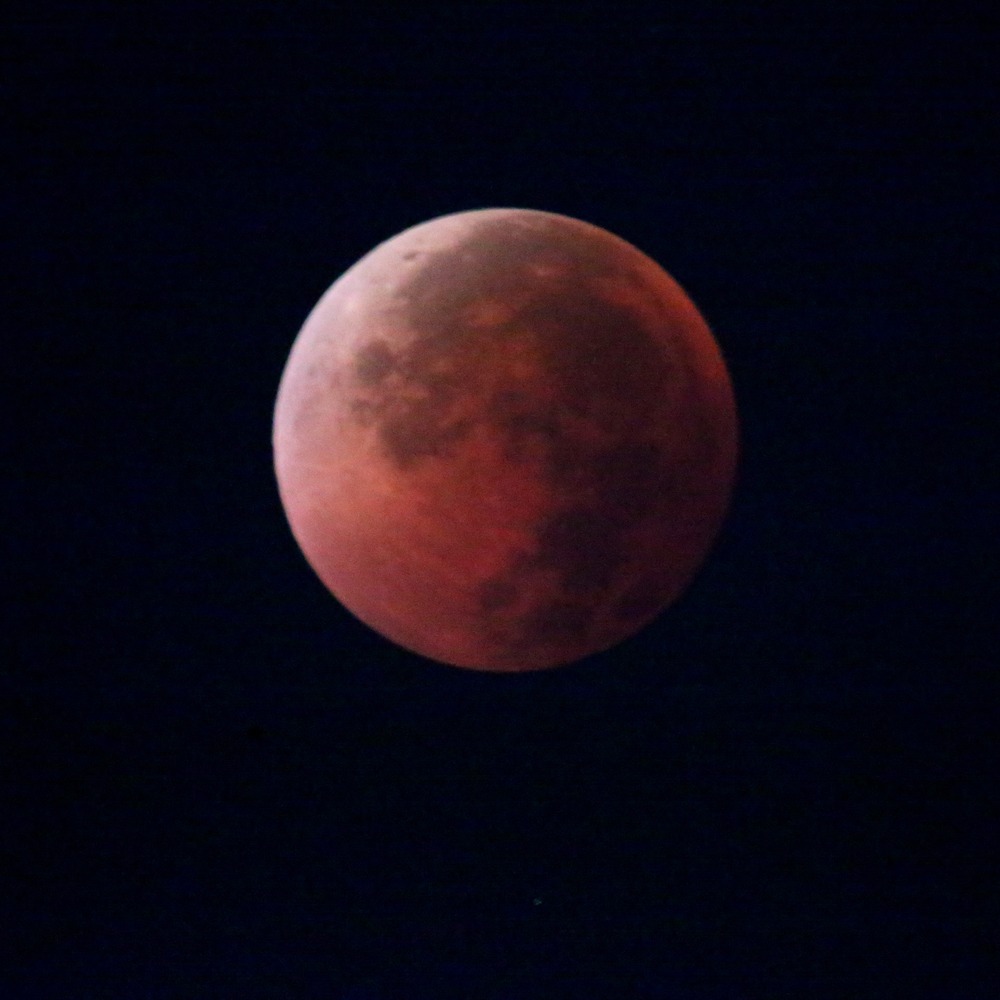 2025年9月8日深夜の月食を撮影しました。肉眼ではほぼ満月に見えます。皆既月食のピークで、見た目以上に光が弱いためピントを合わせるのに苦労しました。