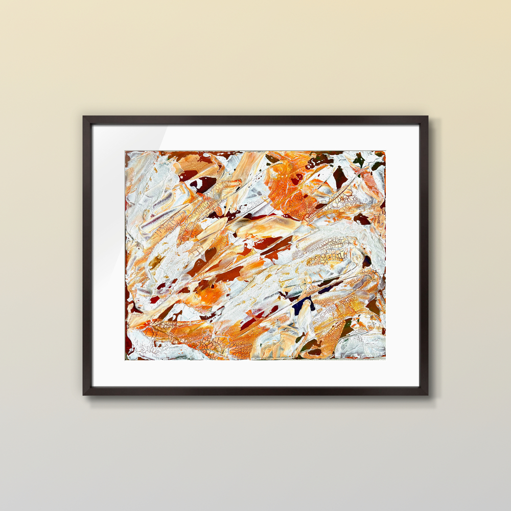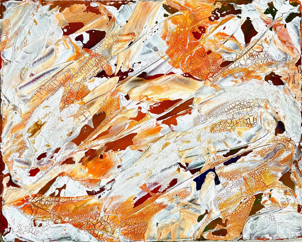 紅葉を思わせる落ち着いた橙色 下地に紫や、緑、赤色を使い、奥深い絵になっています。 また、クラッキングや、金色で立体感があります。