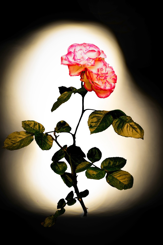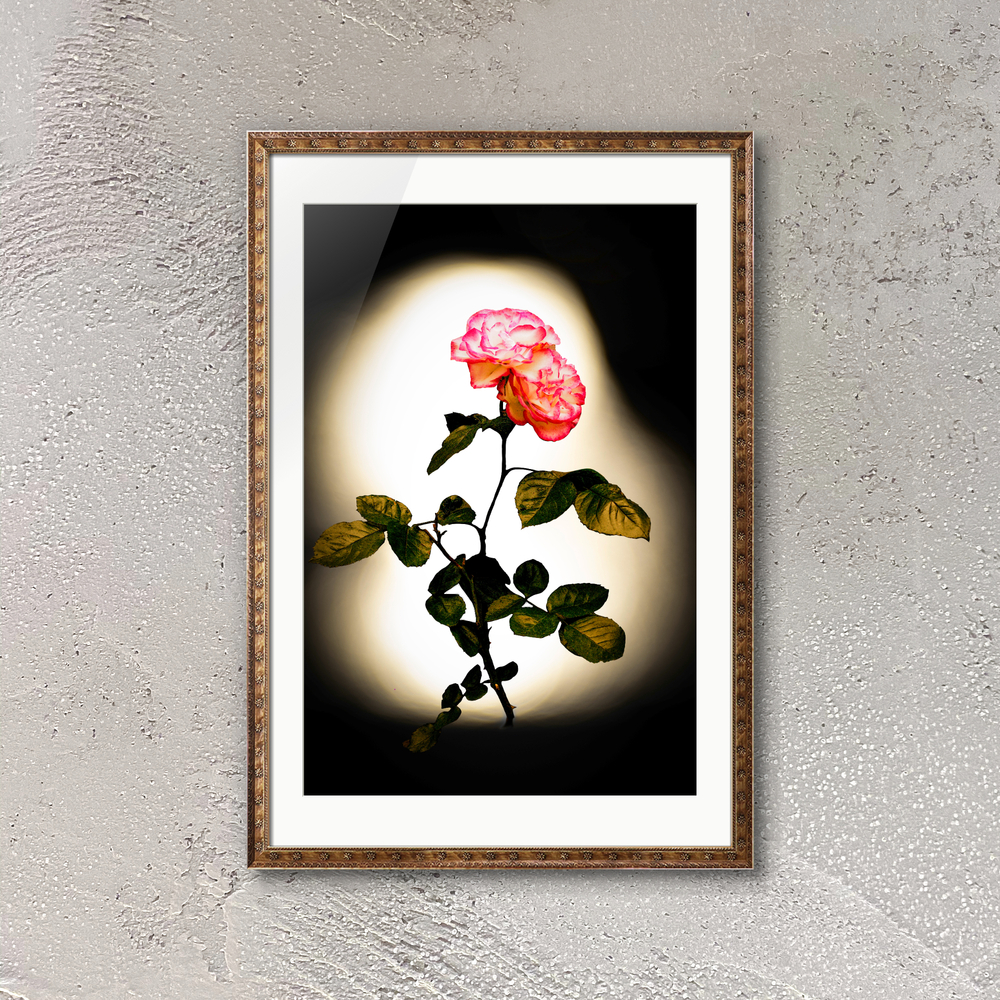 二輪の薔薇の抱擁は、闇をほどき、光を呼び覚ます。 その重なりは、見えない力を生み、世界を少しずつ変えていく。 「ここに灯る一瞬が、誰かの世界をそっと変える。」