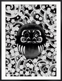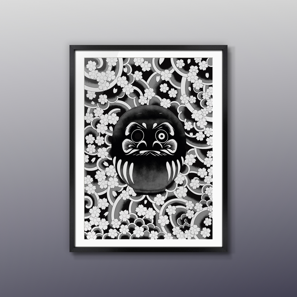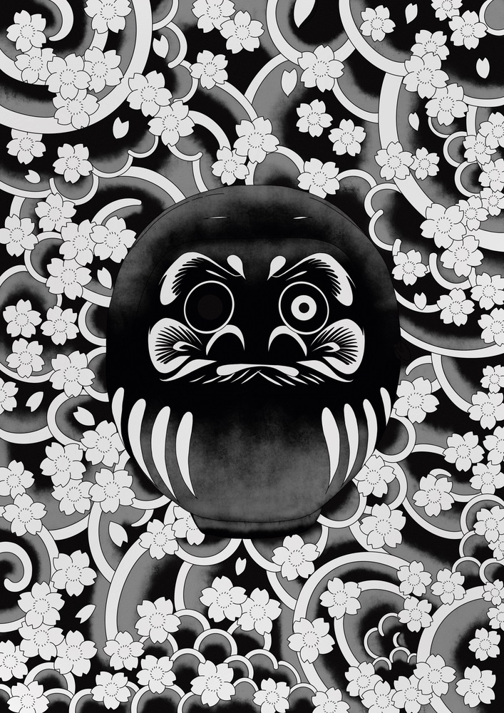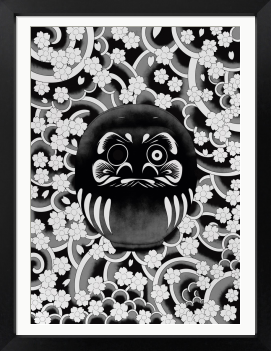 「刺青=怖いもの」 日本にはまだ、そんな固定観念が根強く残っています。 しかし、その図案や構図には、日本人が古来より大切にしてきた美意識や精神性が宿っています。 もし、そのキャンバスが「人の肌」ではなく、ただの「絵」であったなら——。 そこに残るのは、純粋で圧倒的な芸術性だけではないでしょうか。 本作では、日本の伝統的なモチーフである「桜」と「達磨」を用い、和彫りの持つ力強さと繊細さを平面作品として再構築しました。
