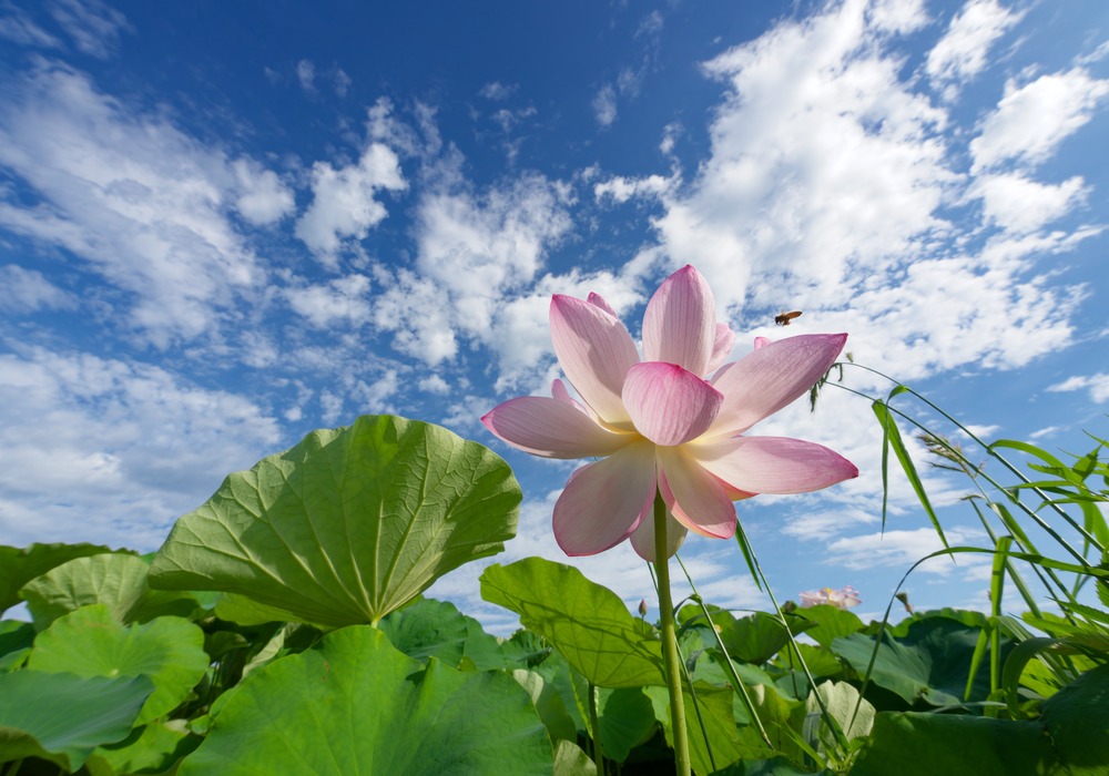 夏の朝の蓮池の風景です。 爽やかな一枚になりました。
