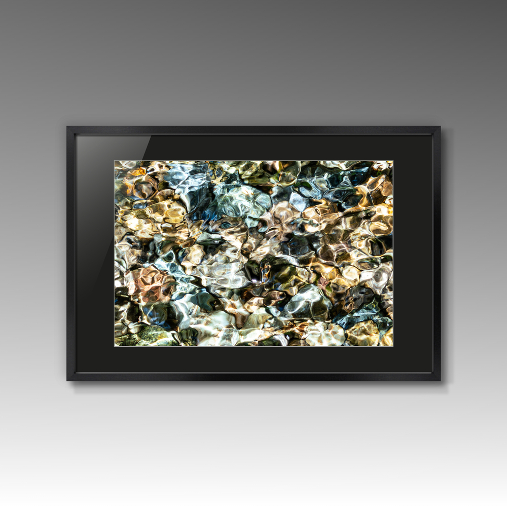 阿蘇市「手野の名水」 巨大な阿蘇溶結凝灰岩の割れ目から 音を立てて湧き出る水 様々な色の石に光をもたらした