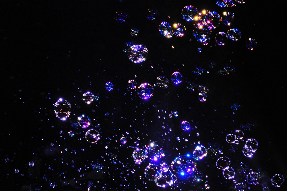撮影日:2025年9月14日 日曜日 19:12 シャボン玉が幻想的に夜空に舞う