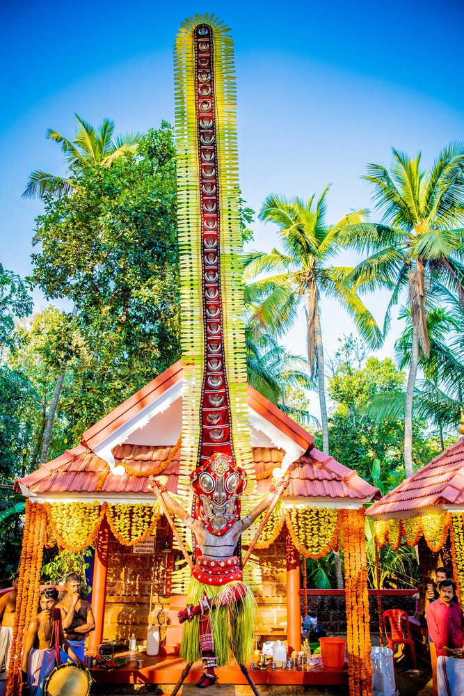 テイヤムとは、南インドの一部の地域で古から伝わる「神降ろし」の儀式です。 神が人に宿り、繁栄と祝福を与えてくれます。 こちらは、女神系の「Bhagavathi(バガヴァティ)」のテイヤム。 幸運の象徴です。