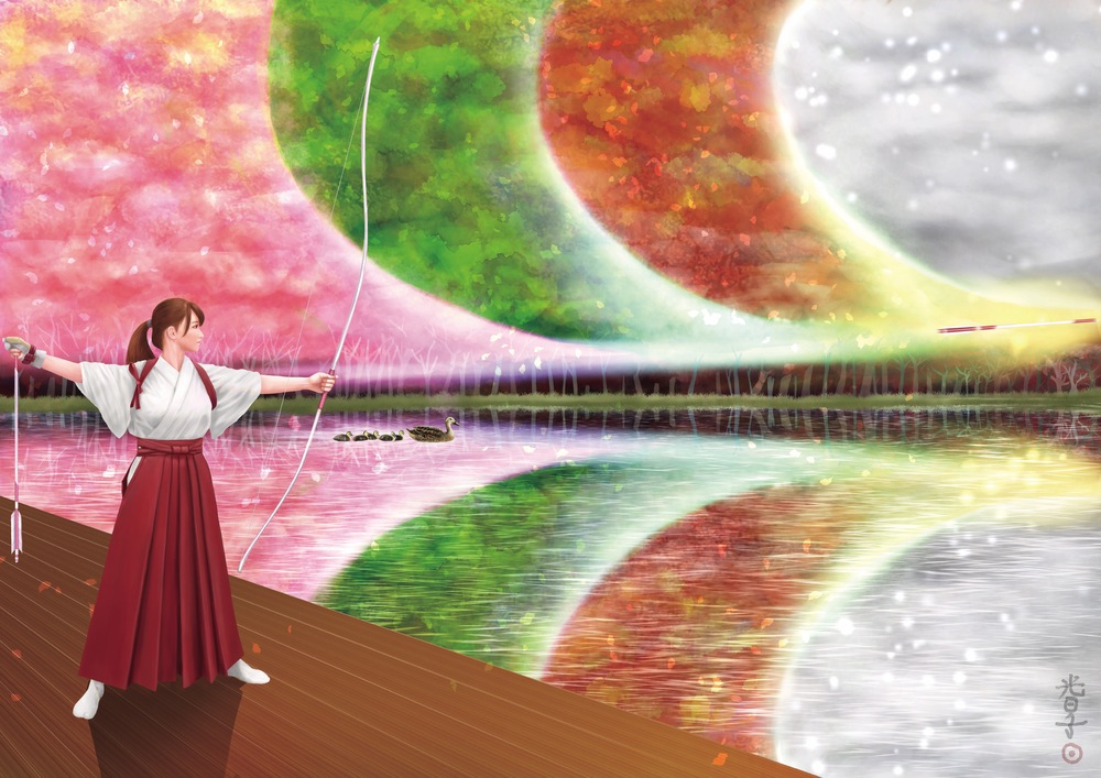 「光陰矢の如し〜四季残心」は、時間が矢のように早く過ぎ去るという儚さと、四季を通じて心を落ち着け、今この瞬間に集中して生きることが未来につながるということをテーマに描きました。 共鳴していただけると嬉しいです。