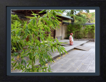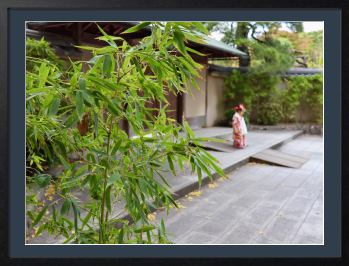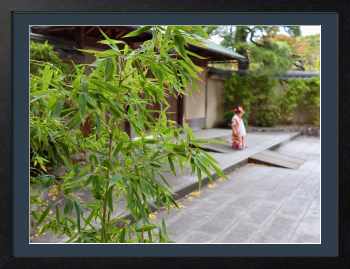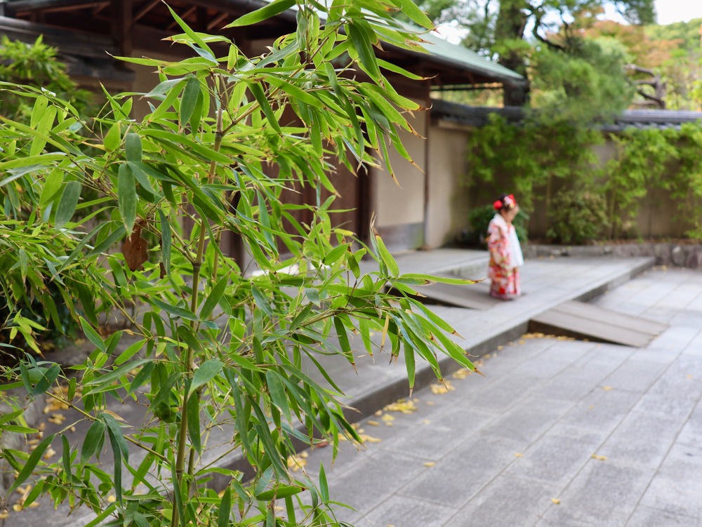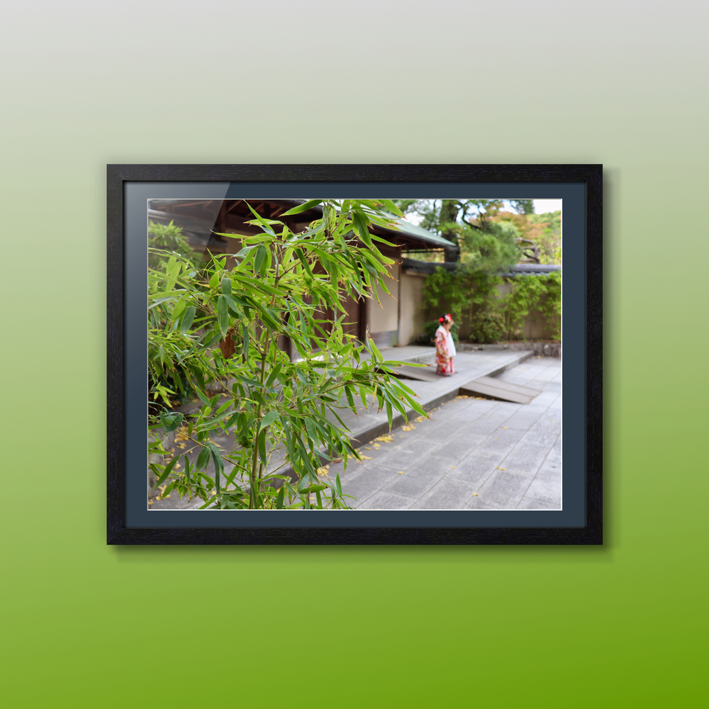 Title:笹の葉越しに映る七五三の少女 和の美と静寂を感じる日本の情景