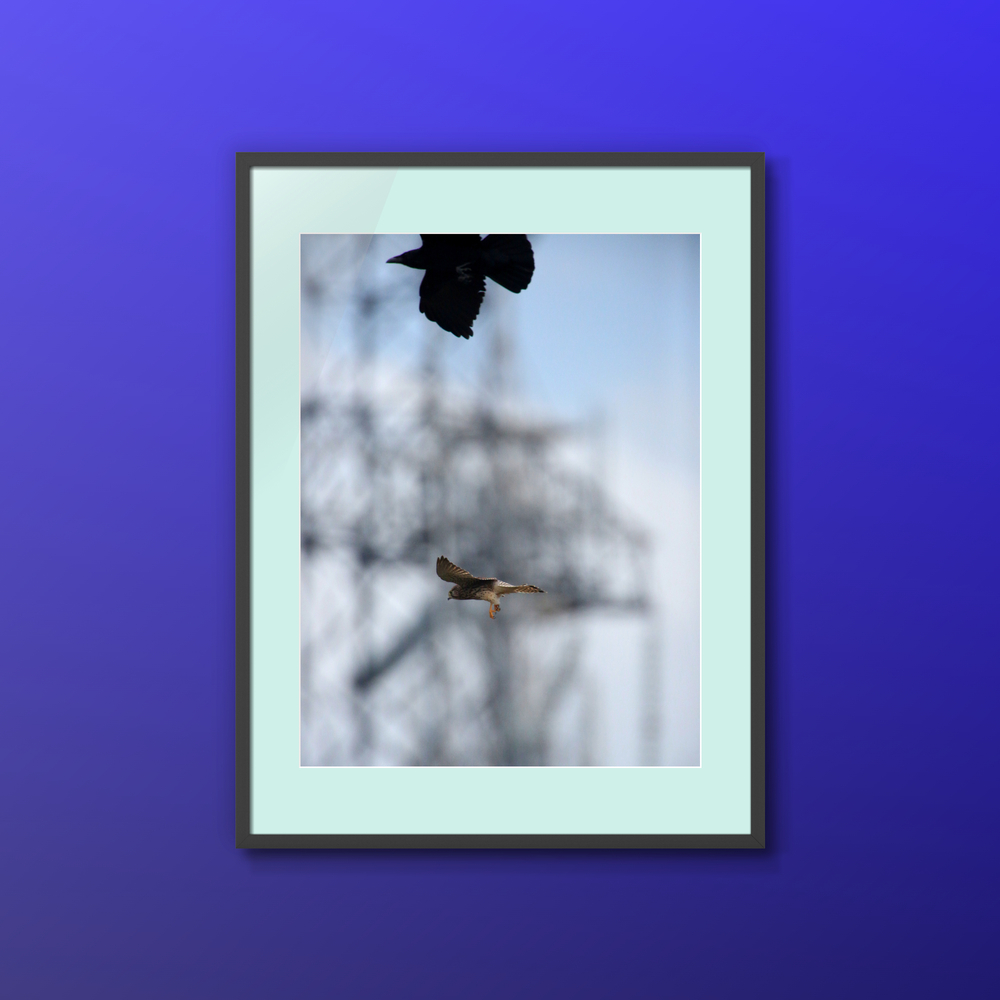 Title:黒い影 ― チョウゲンボウ幼鳥と烏