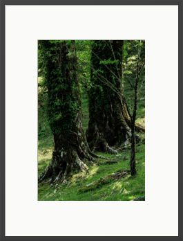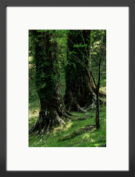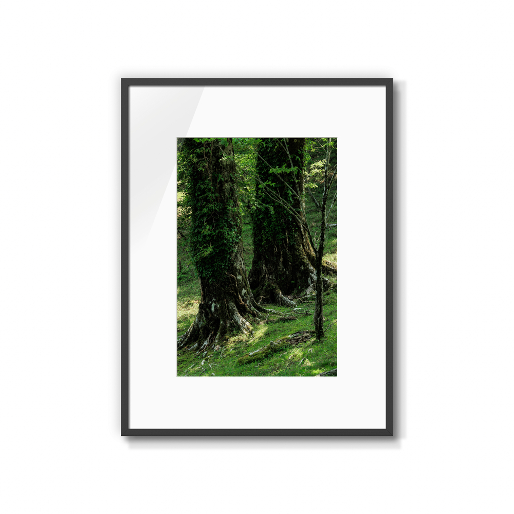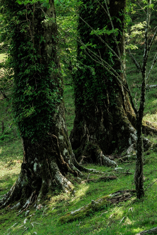 高知県香美市 綱附森 綱附森の登山道で出会った、2本の大木とそのそばに立つ小さな木。まるで家族が静かに佇んでいるように見えました。