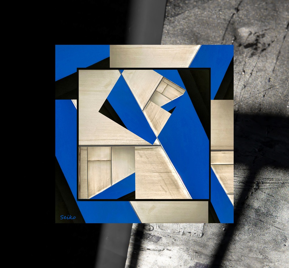 青と黒の四角の浮遊感が、心地よいめまいを起こしそうです。 #四角 #スクエア #青 #黒 #めまい #blue #black #square