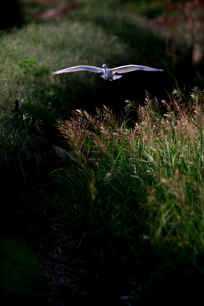 江戸川東岸に残る貴重な農耕地を流れる細い水路。僅かな流れであっても、ここは小魚やザリガニ目当てに水鳥が集まる楽園です。また、暑い日には様々な小鳥が水浴びする姿が見られます。 農作業をする人影がまばらになる頃、何種類ものサギが水路に舞い降ります。