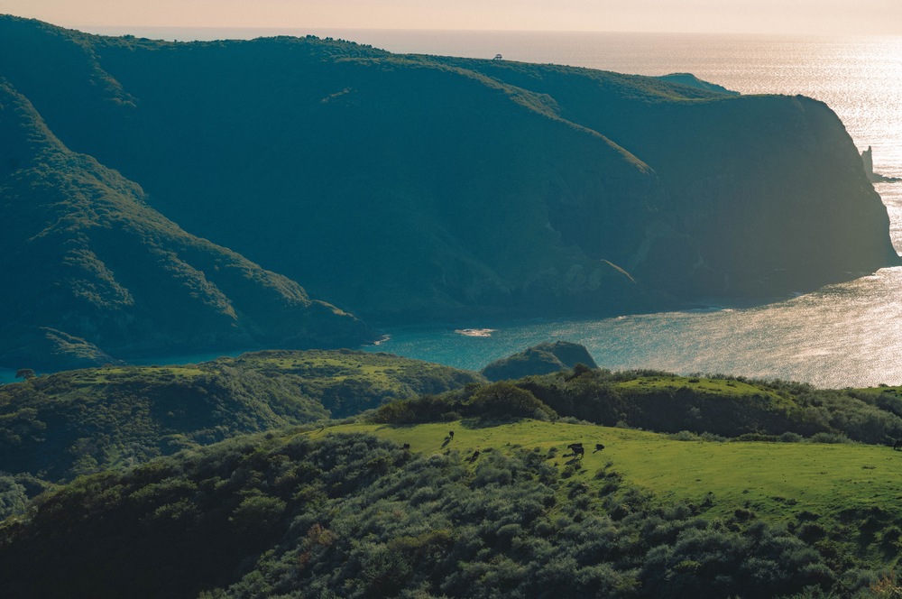 スッと奥から広がる柔らかい光。それに包まれるように放牧された牛が心地良さそうに見えました。