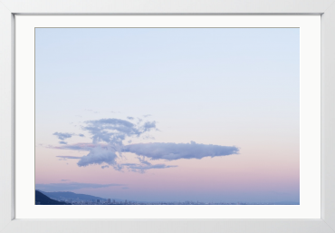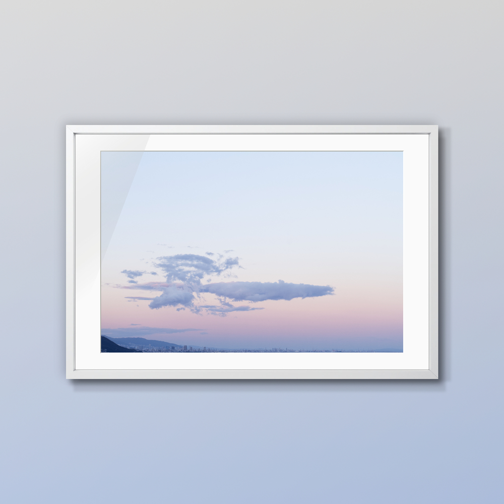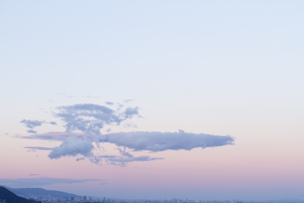 夕暮れ時に淡路島より神戸市街地を眺めると、雲が飛行機のように。 未来へ想いを込めて。