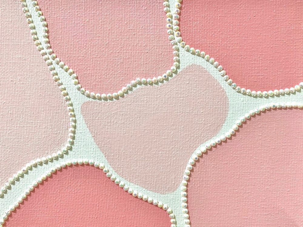 春の訪れを感じさせる淡いピンク色で水面を表現しました。 ストーンで縁取り、可愛らしさや柔らかさを出しました。