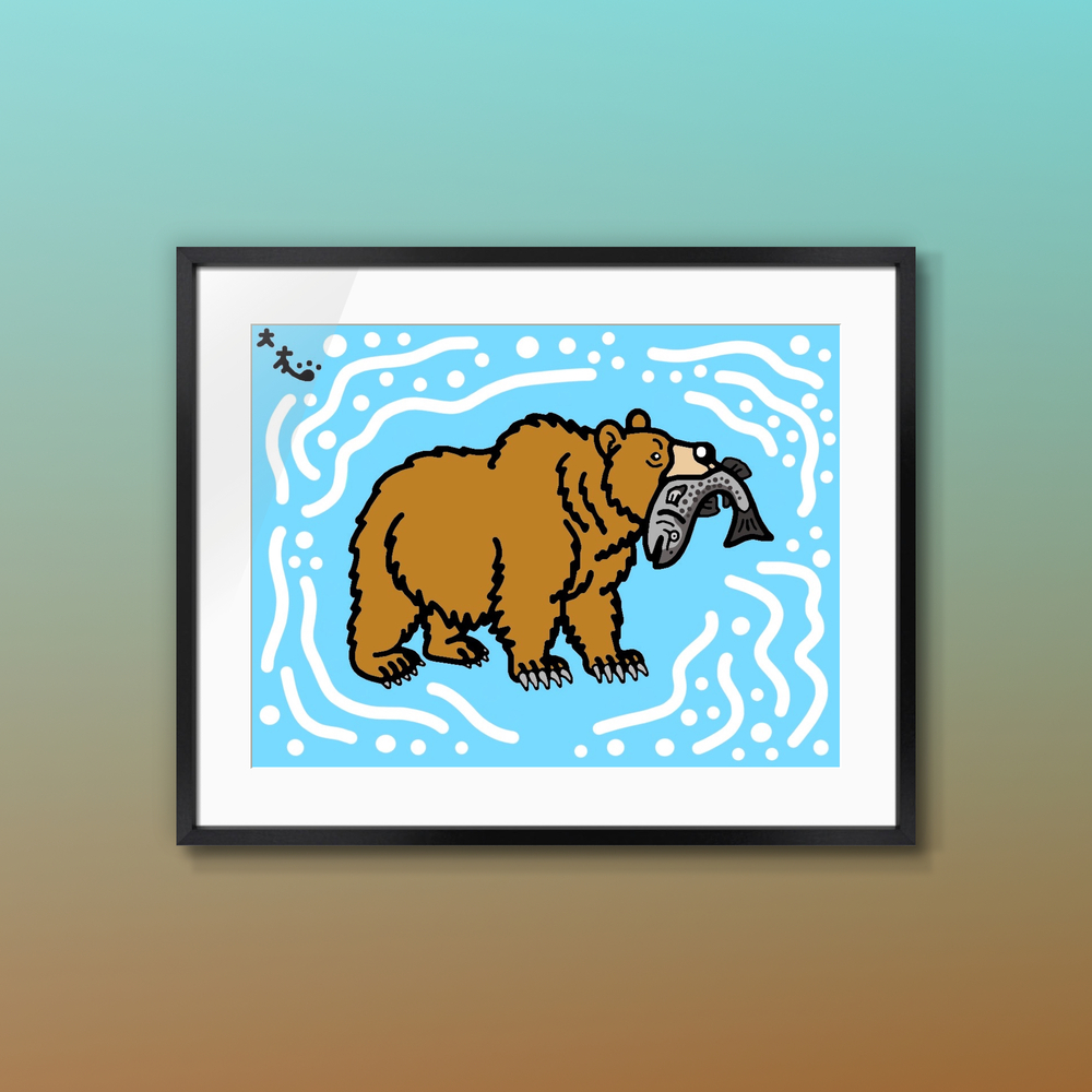 分類:食肉目クマ科/サケ目サケ科 英題:Kodiak Bear and Chinook Salmon