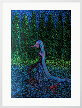 画材 アクリル絵の具 技法 点描画 疫病退散の妖怪 アマビエを描きました。