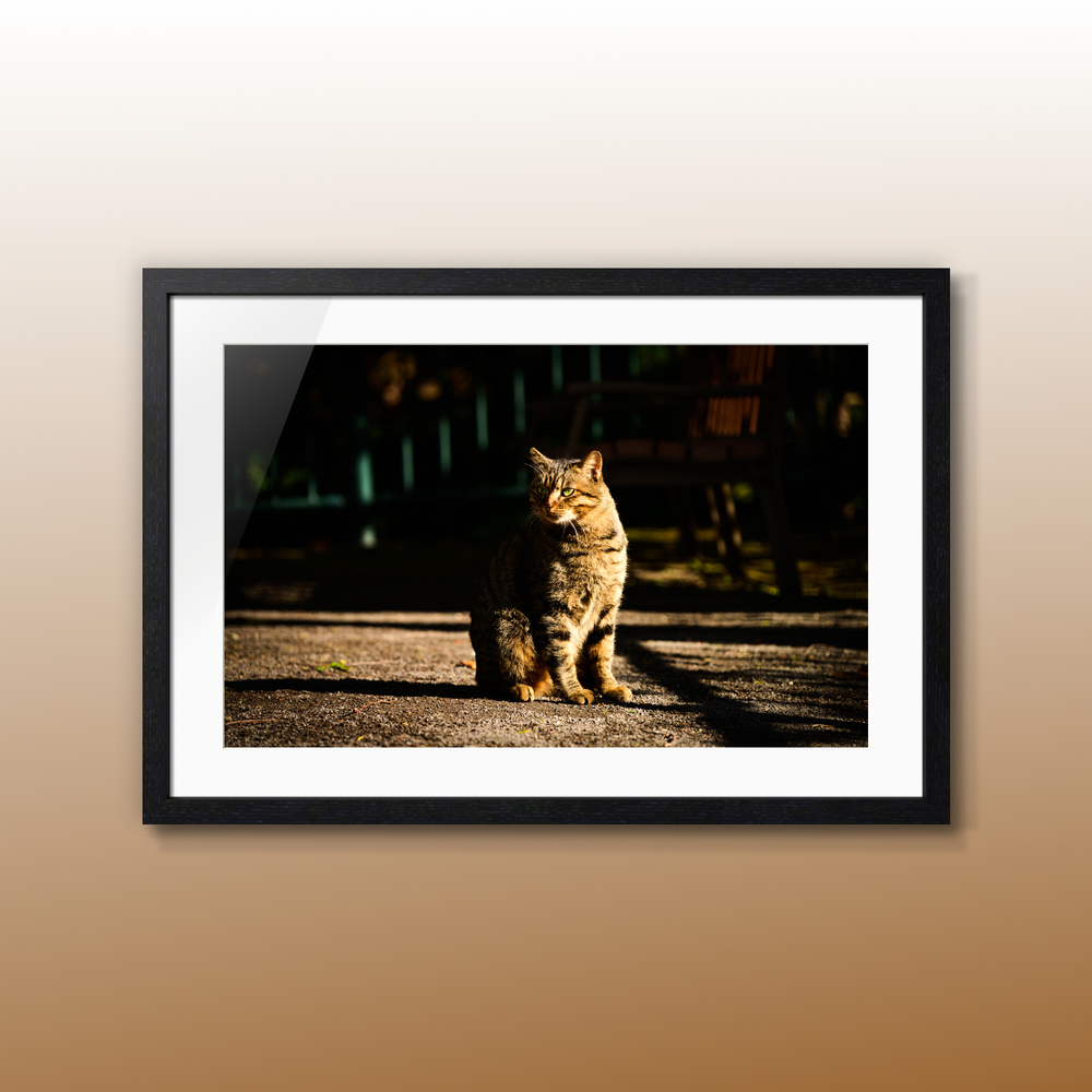 公園で偶然出会った野良猫。 緊張しながら少しずつ距離を縮めてきてくれたこの子。 周りを確認しながら自分の安全を確認する野生の目。 その瞬間の一枚。 太陽に照らされて、カッコよく写る野生の心、その心は暖かく優しい心を表している。