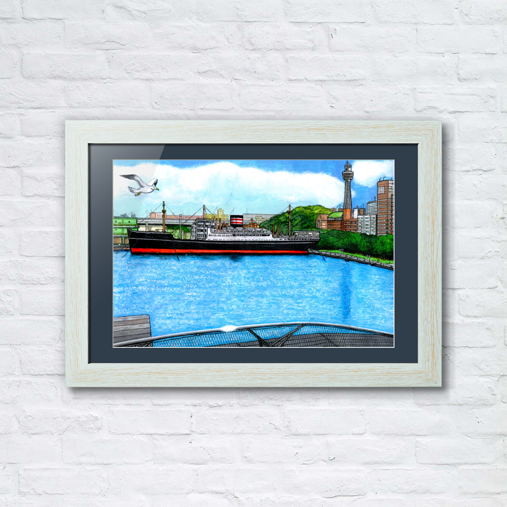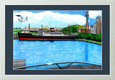 初夏の山下公園付近を大桟橋から描いた風景画です。