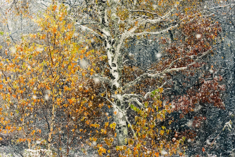 乗鞍の森は、息をひそめている。 一本の古い白樺が、二つの季節のあいだに立っていた―― 秋の名残る温もりと、雪の冷たさが降り始める世界のあいだに。 そのかすかな静寂の中で、時さえも耳を澄ませているようだった。
