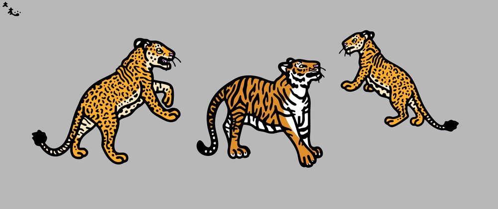 分類:どちらも食肉目ネコ科 英題:Leoponesses and Bengal Tiger