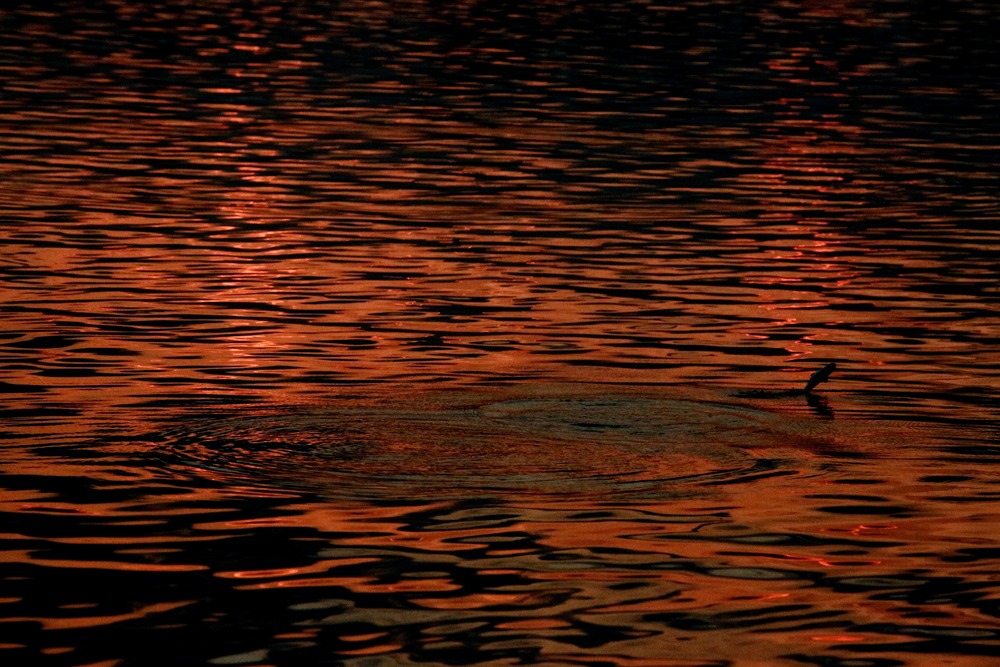 Title:江戸川夕景 ― 川面を跳ねるハクレン