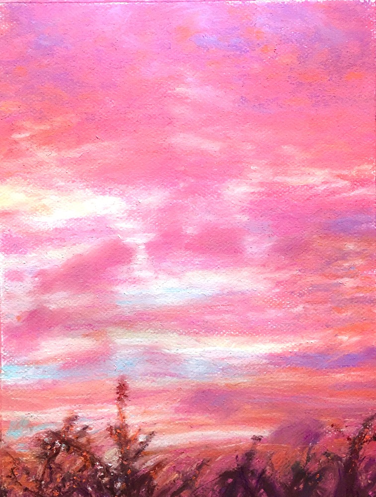 日が暮れる前、ふと見上げると綺麗なサーモンピンクの空がありました。