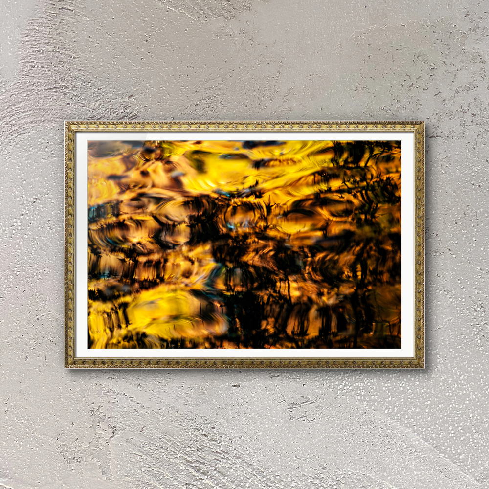 揺れる反射の中に、光と闇が混ざり合う。 抽象に潜むエネルギーと心理の変化。 『光への変容』は、見る者の心をも変容させる。