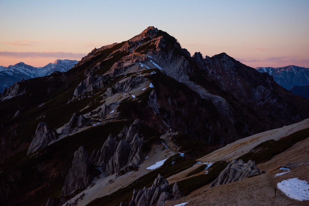 夕方の光に照らされた燕岳。