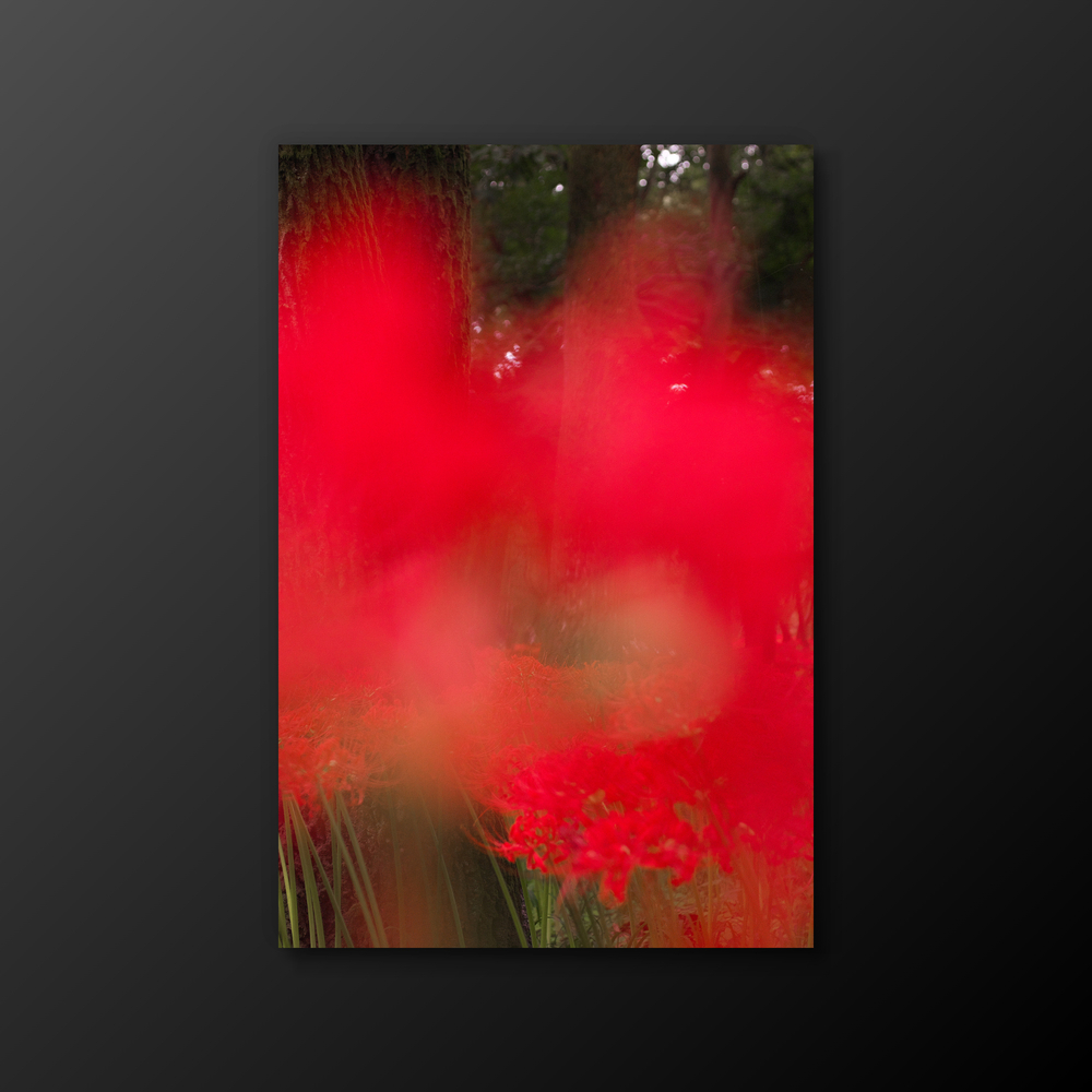 界を覆うような鮮烈な赤と、その奥に潜む深い緑のコントラスト。 花という形を超えて、色彩のエネルギーそのものを閉じ込めました。 モノトーンの家具や、シックな部屋のアクセントとして、強い存在感を放ちます。
