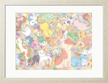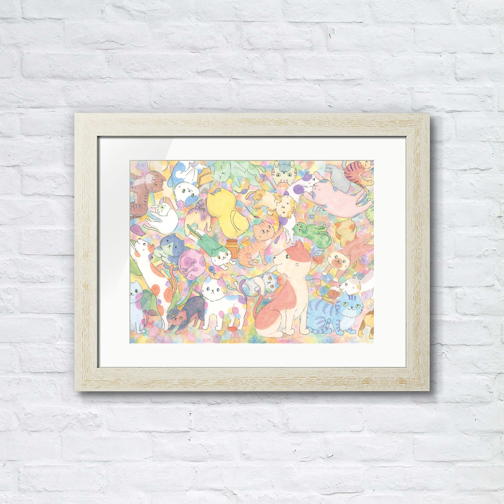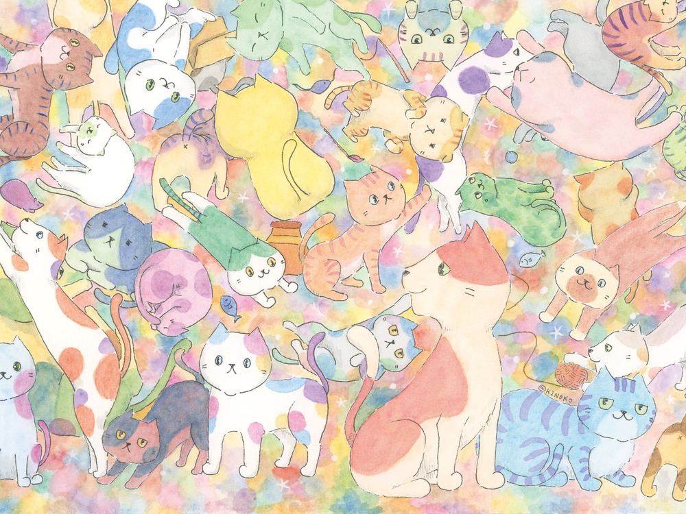 愛らしい猫たちが元気に集まる癒しのイラストです。 この水彩で描かれたカラフルなイラストは、まるで絵本の1ページから飛び出してきたかのような、ゆるかわな雰囲気が魅力です。 猫たちが心を和ませる姿は、見ているだけでほっこりとした気持ちにさせてくれます。 猫たちの愛らしい姿が、相手の心に温かさを届け、多くの笑顔を生むことでしょう。 心温まるかわいい猫たちと共に、その特別な瞬間をお楽しみください!