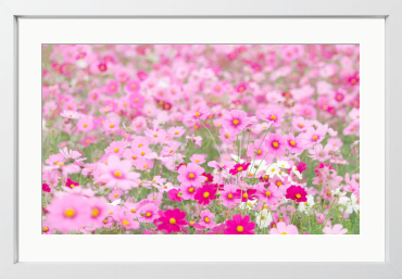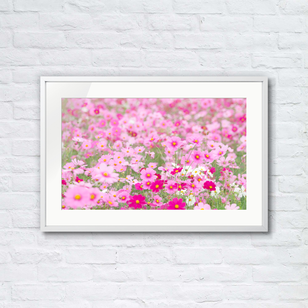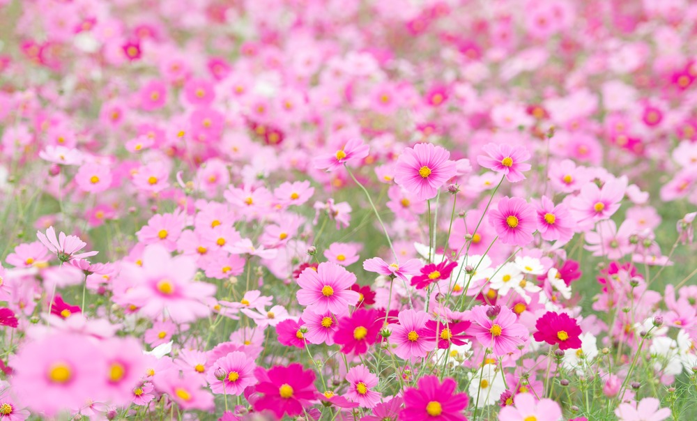 一面に咲くコスモスを柔らかい雰囲気で撮影しました。