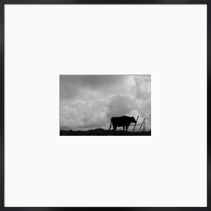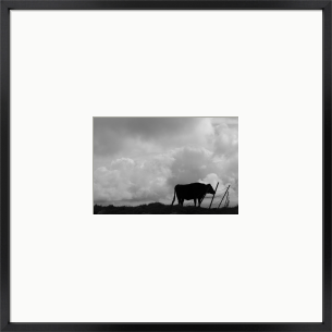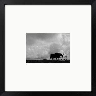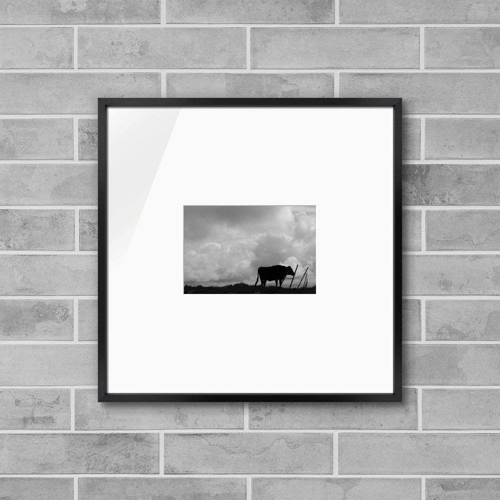 四国カルストの高原にて、雲が厚く広がる空の下、一頭の牛が静かに佇んでいます。モノクロで切り取られたこの風景は、色彩を排したことで自然の輪郭と空気感がより鮮明に浮かび上がり、見る者の心に深く染み渡ります。柵と牛のシルエットが、人と自然の境界を象徴するように立ち、広がる台地の静けさと力強さが同時に感じられます。四国カルスト特有の地形と空の表情が織りなすこの一枚は、日常から少し離れた場所で出会う「自然との対話」を写し取った、記憶に残る風景です。