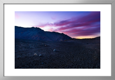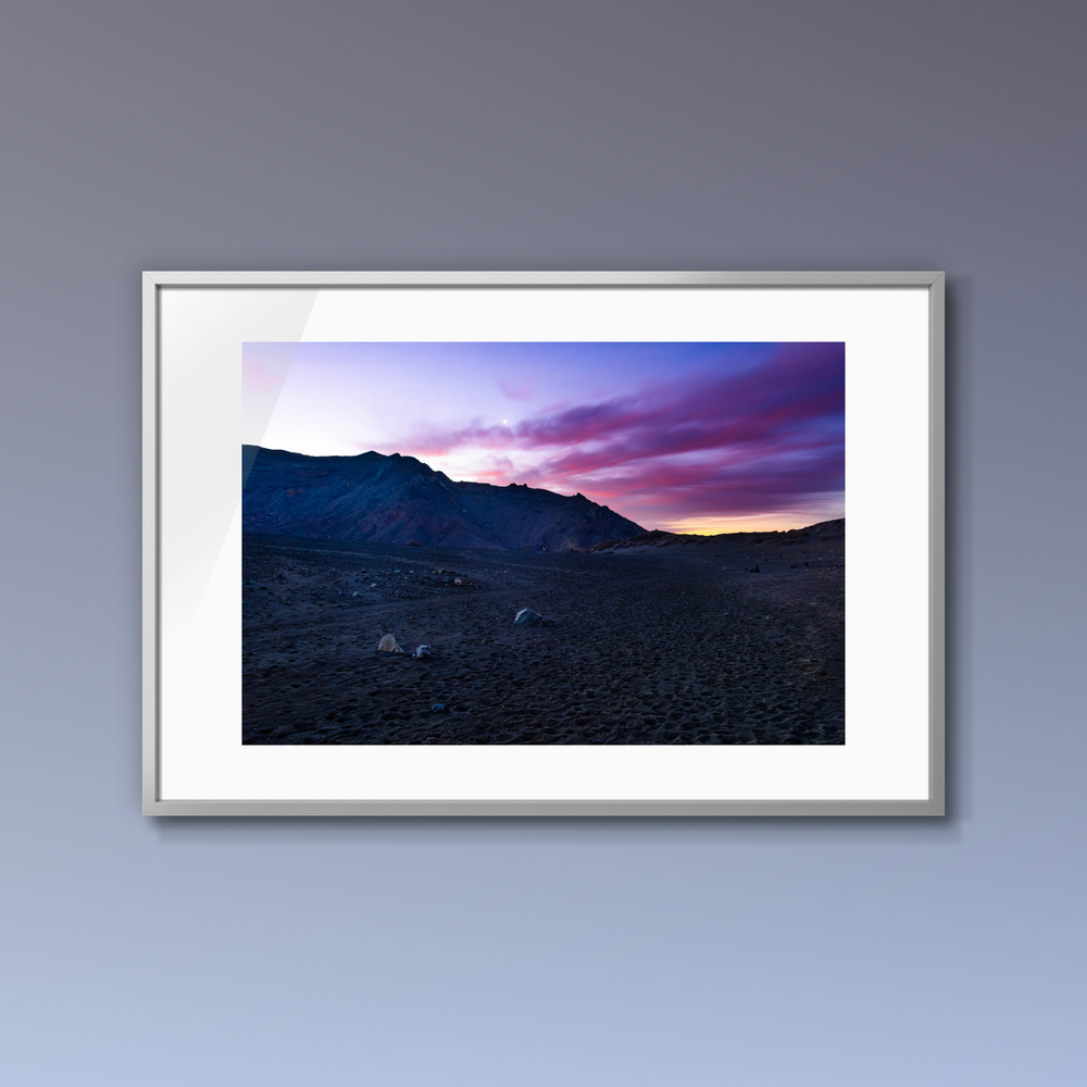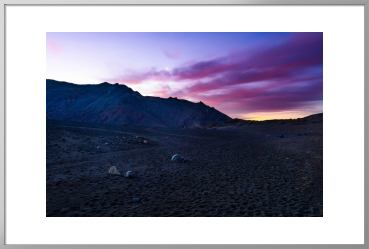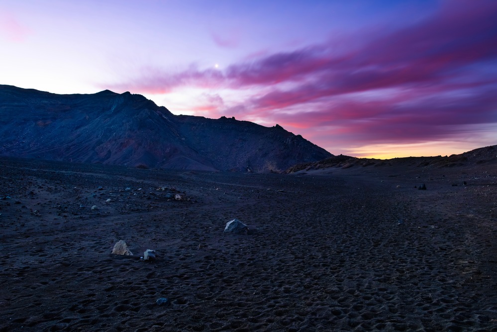 日の出直前の阿蘇砂千里ヶ浜の風景です。荒涼とした大地と鮮やかな空模様のコンビネーションが魅力的な一枚です。