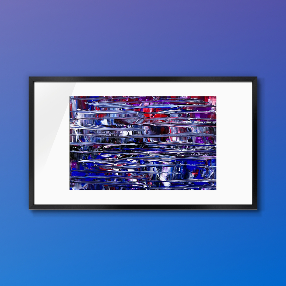 A calming abstract acrylic painting that flows with deep indigo waves. Rich layers of indigo and midnight blue ripple like quiet ocean waves with subtle golden foam. This healing masterpiece dissolves mental noise, awakening profound calm and inner freedom. Its wave layers shift beautifully with light. Ideal for bedrooms and meditation spaces. Available as original or giclée print—let these indigo waves bring deep calm and gentle freedom.