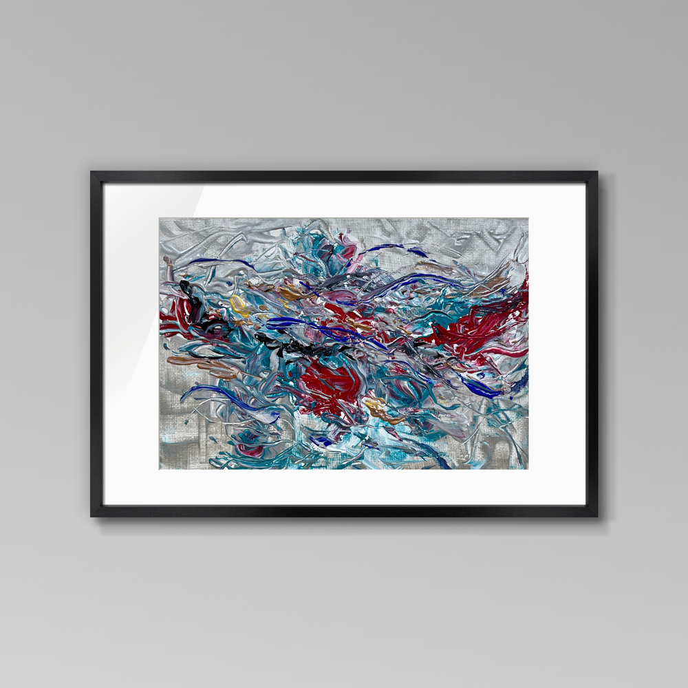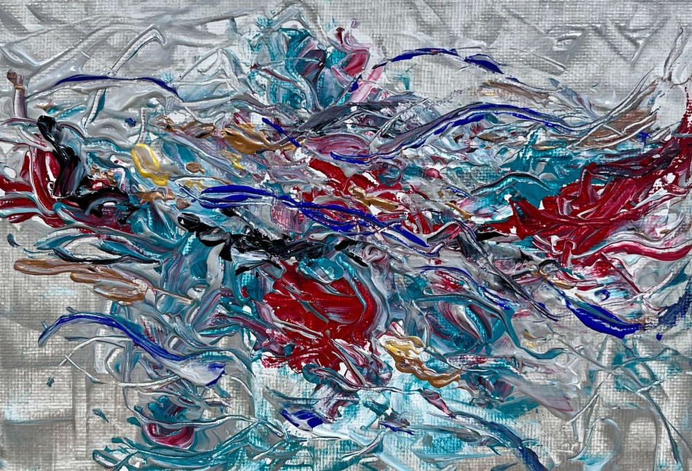 心を刺激する、色彩の嵐の囁きがここに広がります。多彩な色が織りなす美しいハーモニーが、あなたを新たな感覚の旅へと誘い、心に響く感動の瞬間をもたらします。この作品は、観る人の心に豊かなイメージを呼び起こし、空間を彩る特別な存在としてお楽しみいただけます。