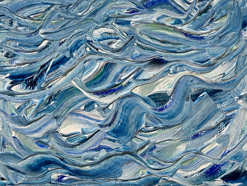 心の深淵から響いてくる、青の波動がここにあります。穏やかなバイオリズムを感じさせ、静まり返った空間に浸透するように広がります。この作品は、見つめるたびに心に平安をもたらし、あなたの生活空間に深い serenityを加える贅沢な一品です。