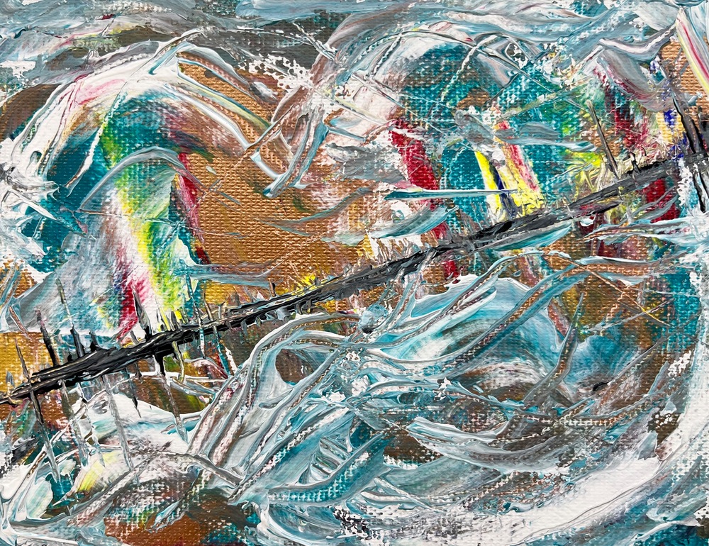 磁気嵐が創り出す色鮮やかな虹のベールが、未来都市を幾重にも包み込み、時空を超えた幻想的な世界に広がります。この作品は、絶え間ない変化の中で独自のメッセージを放ち、あなたの空間に刺激的なエネルギーをもたらします。