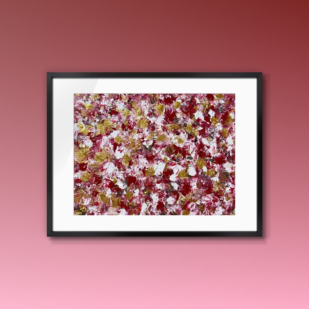 心を惹きつける美しいカトレアの花々が、深い赤色の幻想的な世界を描き出します。その繊細な色合いは、まるで情熱的な夢に浸るような美しさを漂わせています。優雅な花びらが織りなすこのアートは、日常の忙しさを忘れさせ、心に温かな安らぎをもたらしてくれるでしょう。