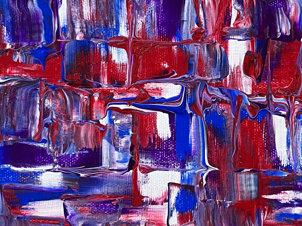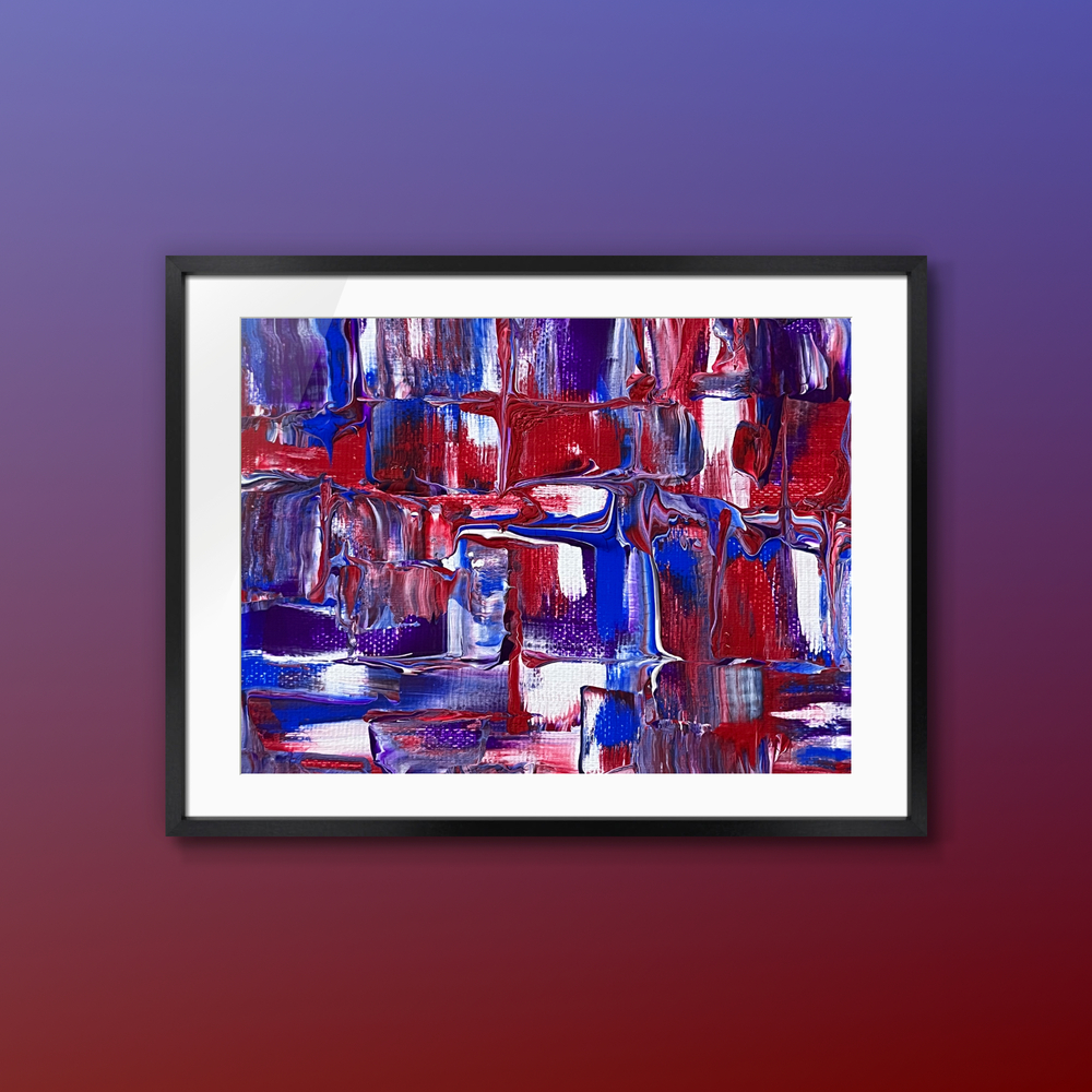 深い闇に包まれたトリコロールの幻想が、静かに心を引き込む美しい作品です。深いネイビーブルーと神秘的なブラックが調和し、まるで夜空に輝く星々を思わせるような不思議な魅力を持っています。見るたびに、深遠な宇宙の一部に触れたかのような感覚を味わえます。小さなキャンバスには、夜の静寂が秘められています。