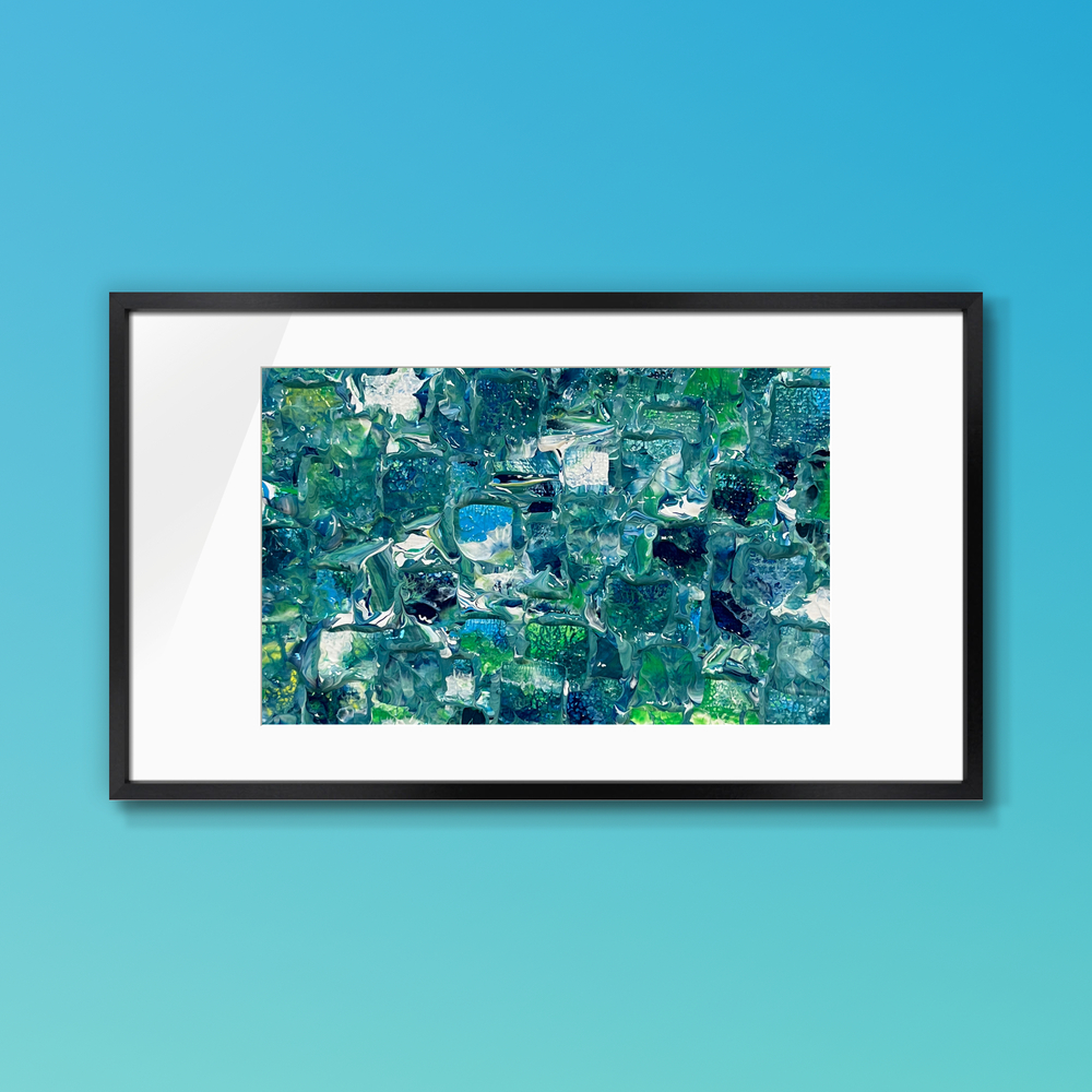 緑豊かなモザイクが織りなす、心を和ませる作品です。豊かな色彩が調和を生み出し、まるで自然の中に身を置いているかのような穏やかな感覚が広がります。日常の忙しさを忘れ、心に余韻を残す静かな時間へと導いてくれることでしょう。鑑賞するたびに、心の奥に秘めた思いや大切な瞬間を再認識させる存在となり、特別な空間を演出する一枚です。