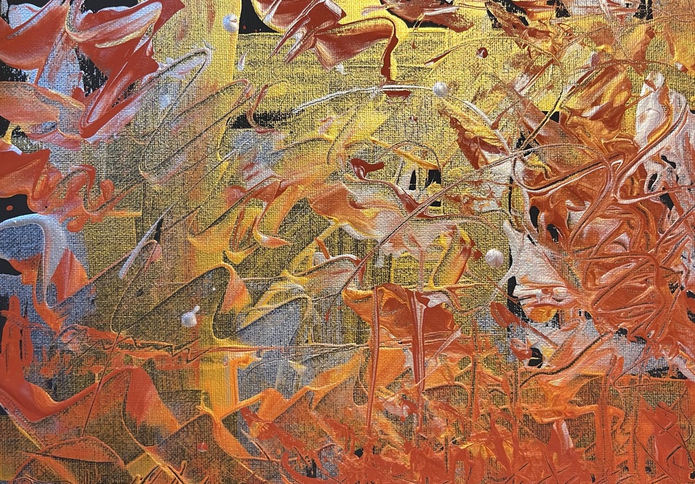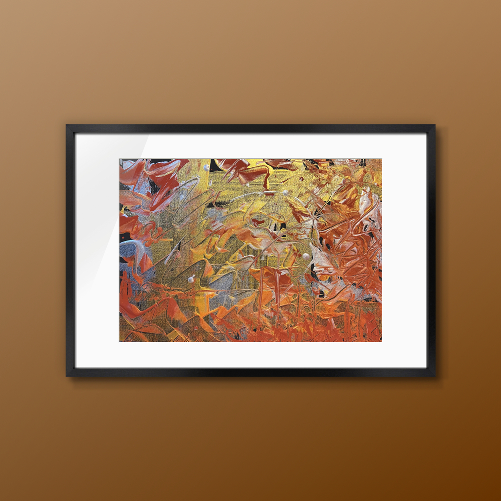 橙と金の炎が黒の城郭に宿る、秋の古都をイメージした抽象アクリル画です。お部屋の壁に佇む色彩のインパクトとメタリックの輝きが映え、秋の静寂と豊かさを感じさせる情景が広がります。心の奥に秘めた思い出や感動を呼び覚まし、リビングをドラマチックに演出する限定の秋アートをお届けします。