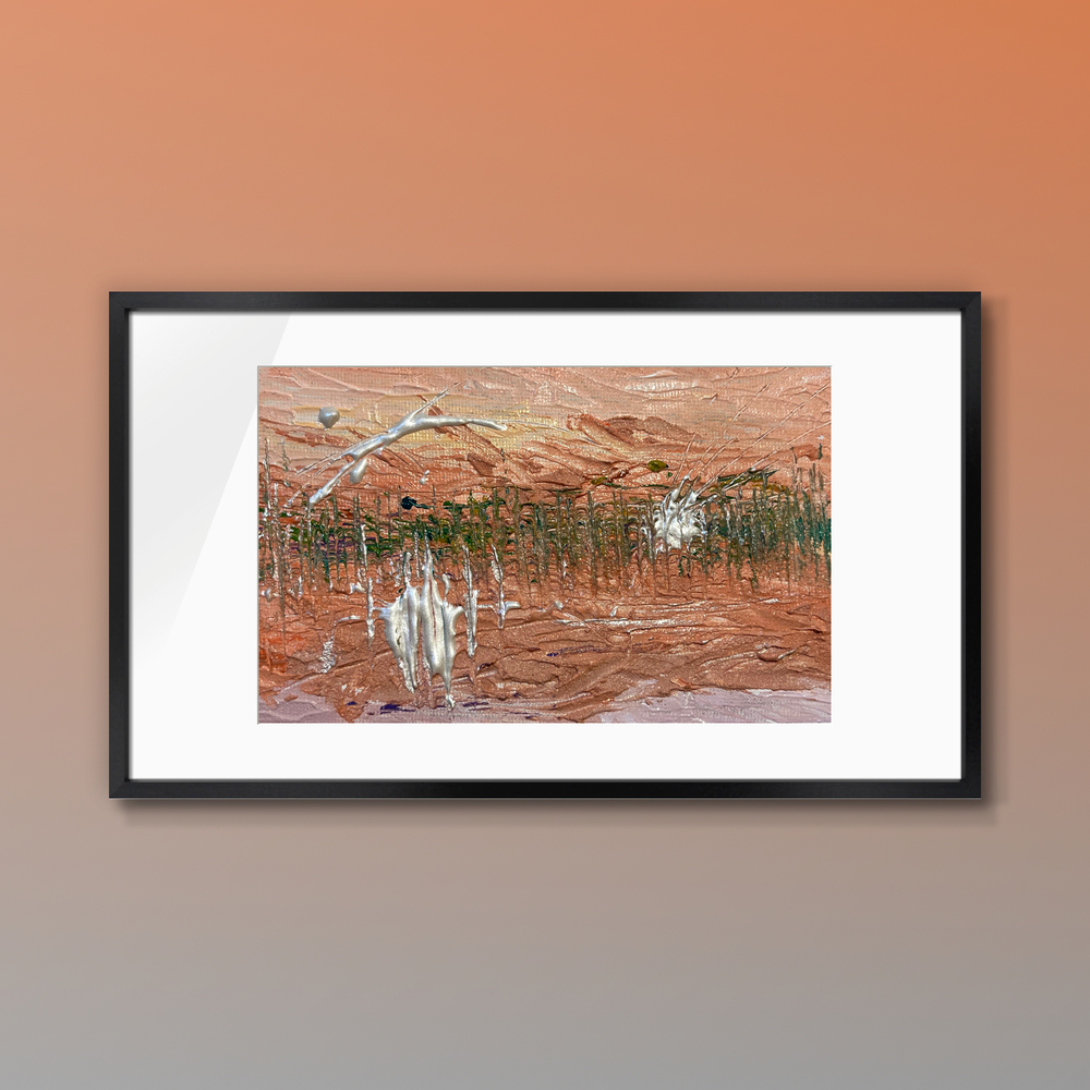 神秘的な色合いが織り成す、心を惹きつける不思議な魅了に満ちた作品です。多彩な色彩が幻想的な風景を描き出し、まるで夢の中を旅しているかのような興奮に満ちた感覚が広がります。日常の喧騒を忘れ、心に刺激を与える瞬間へと誘ってくれることでしょう。何度も鑑賞することで、心の奥に秘めた思い出や感動が呼び覚まされ、特別な空間を演出します。