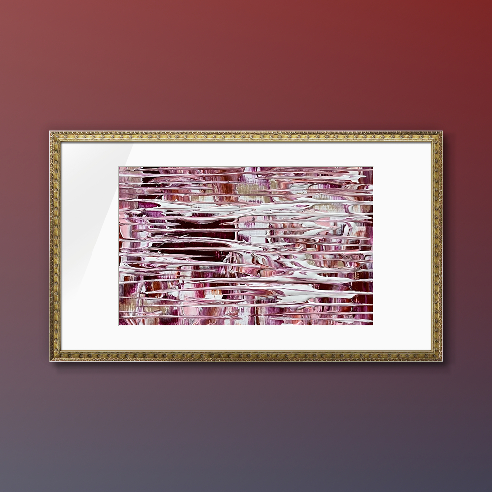 優雅なボルドーのグラデーションが織りなす、繊細な色彩のキャンバスアートです。 淑女のように柔らかく、神秘的で深い色合いが心を包み込み、日常の景色に特別なスパイスを加えてくれます。この作品は、夜の帳が下りる瞬間を切り取ったような、夢のようなひと時を演出します。