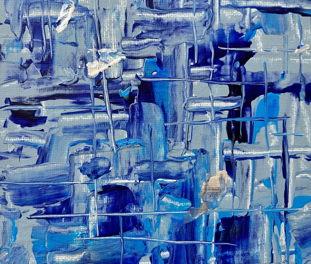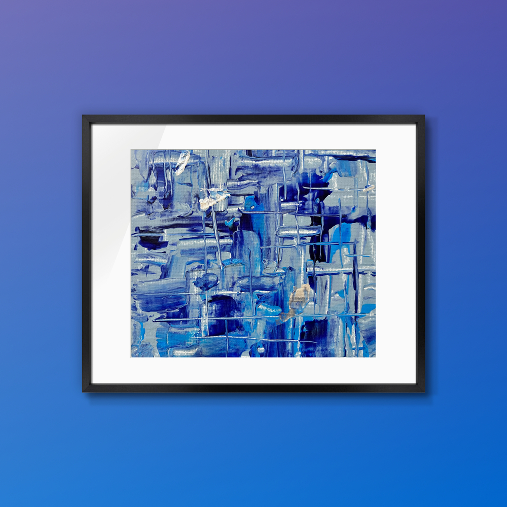 青系バリエーションの格子模様が心を惹きつける美しい作品です。深い色合いが静謐な空間を描き出し、まるで穏やかな海の底にいるかのようなリラックスした感覚が広がります。日常の喧騒を忘れ、心に清らかさをもたらすひとときへと導いてくれることでしょう。