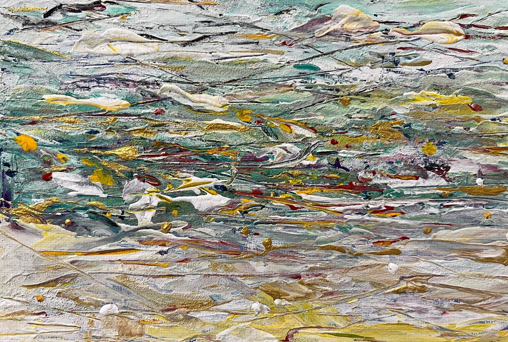 艶やかな緑色の流れが織り成す、心を穏やかにする美しい作品です。繊細な色彩が心地よい自然を感じさせ、まるで静かな午後のひとときを味わっているかのような落ち着きが広がります。日常の喧騒をしばし忘れ、心に癒しをもたらしてくれる瞬間へと導いてくれることでしょう。何度も鑑賞することで、心の奥に秘めた安心感や優しさを再認識させる存在となり、特別な空間を演出します。