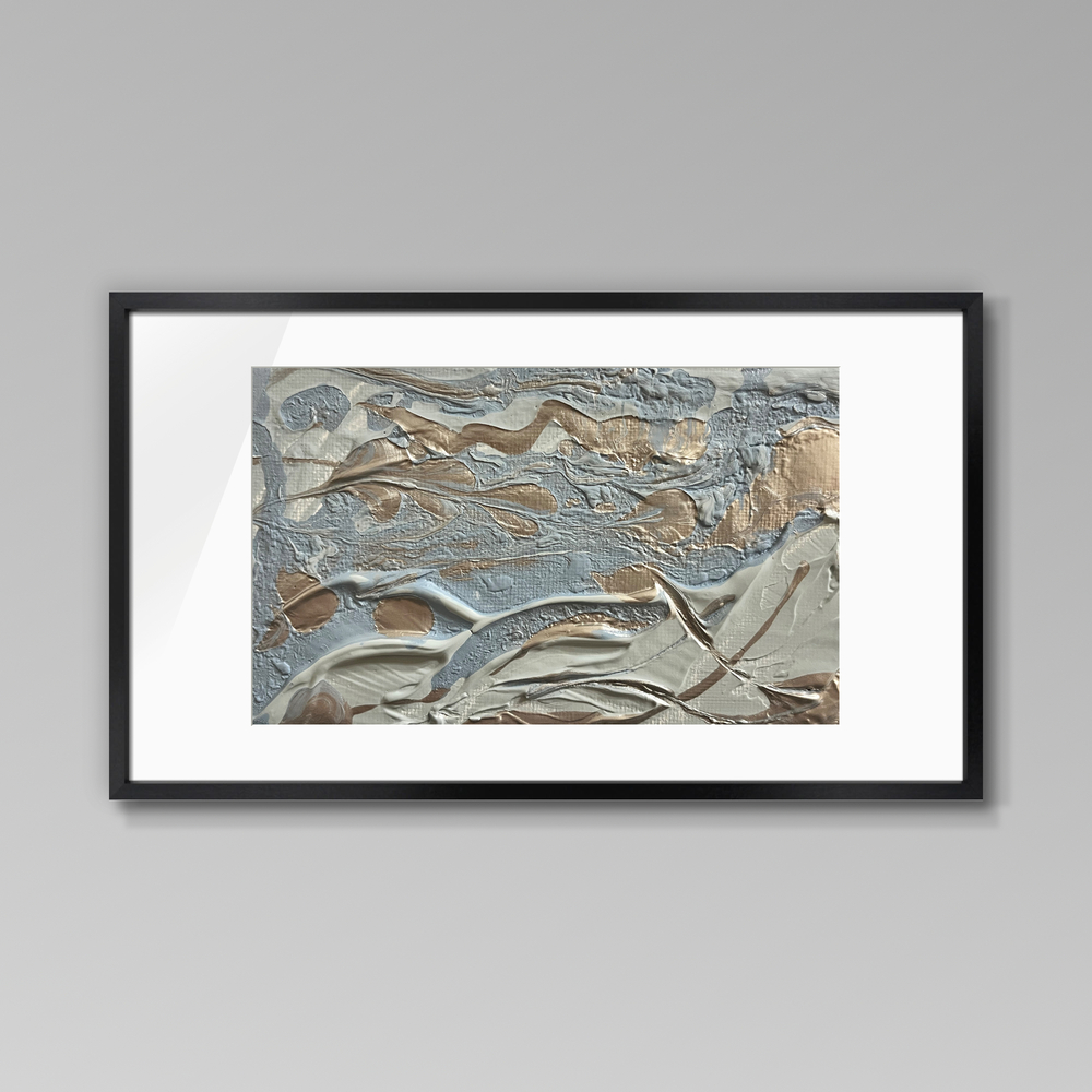躍動的な銀色の波紋が織り成す、心を引き込む抽象画です。柔らかな輝きが目を奪い、まるで静かな水面に映る夢のような光景が広がります。視覚的な刺激が日常の雑務を忘れさせ、心に静けさをもたらす瞬間へと誘ってくれることでしょう。