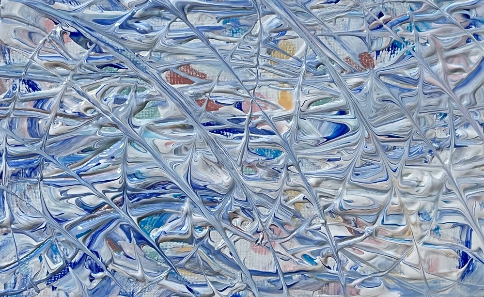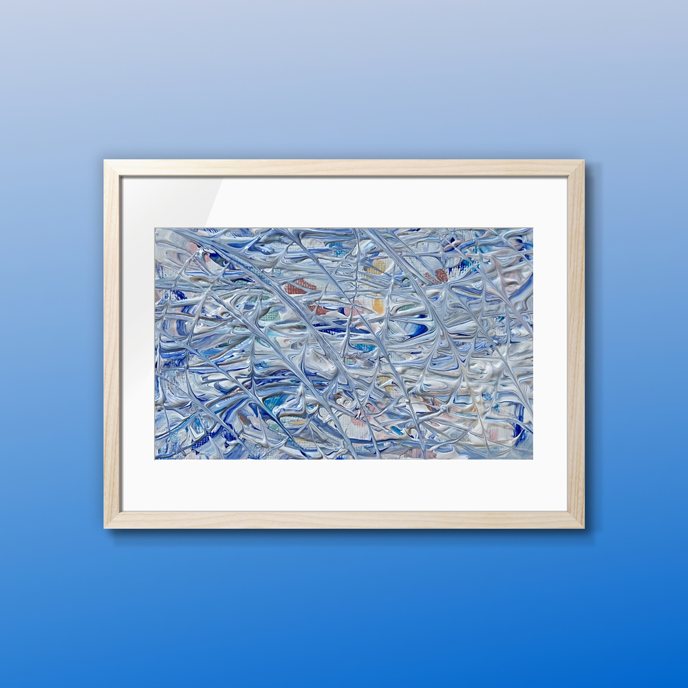 Frosted Silver Veil (111) – A pure abstract acrylic painting that covers you in a frosted silver veil of clear silence. Icy layers of frosted silver and translucent white create crisp purifying frost with subtle blue accents. This healing masterpiece clears emotional fog, awakening crystal-clear calm and inner purity.