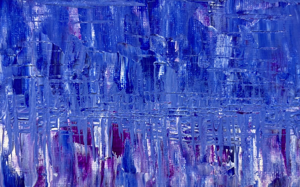 深いサファイアの夜が、優しいドレープのように心を覆います。 ブルーとパープルの層が、女性らしい静かな憂いをそっと紡ぎます。