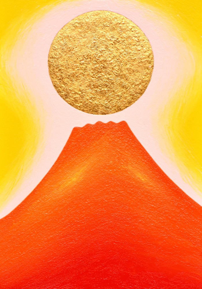 ミニマルな赤富士、油絵作品です。