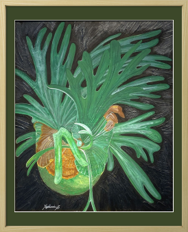 高温多湿を好む熱帯植物。溶岩が流れるように葉を伸ばす形状に魅了される。