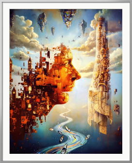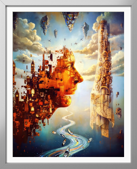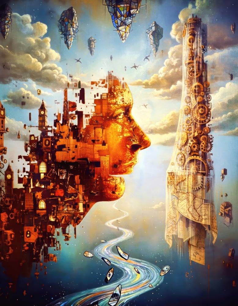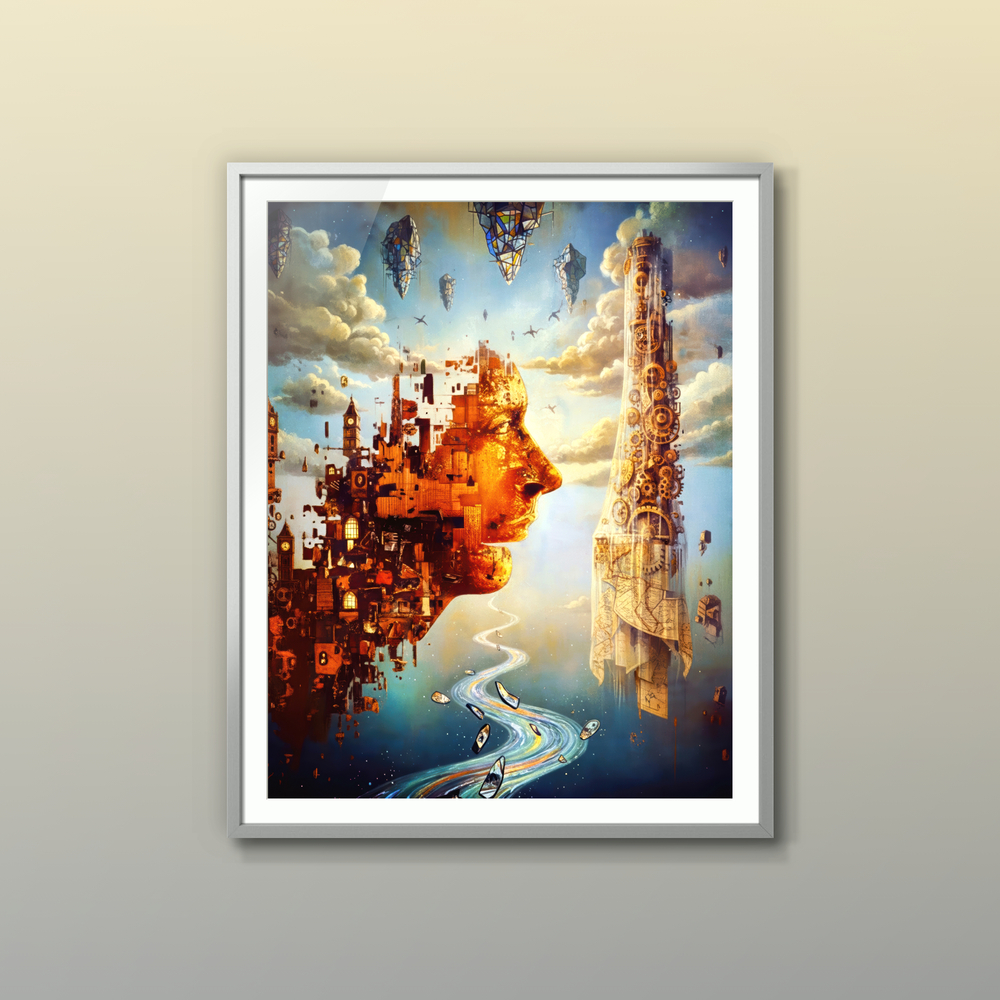 本作は、 時間を直線ではなく「回廊」として捉え、 個人の記憶と文明の歴史が交差する場所を視覚化した作品です。 幻想、建築、機構、空。 それらが織りなすこの風景は、内なる時間感覚を揺り動かします。